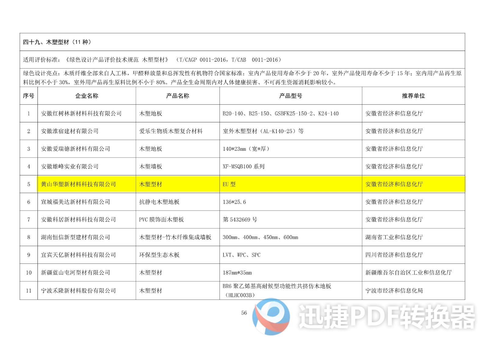 第五批綠色產品名單公布,華塑EU型木塑型材上榜。